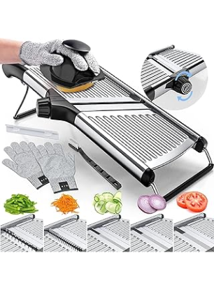 Gramercy Adjustable Mandoline Food Slicer, Mandoline Slicer for Kitchen, Mandolin, Potato Slicer, Tomato Slicer, Carrot Slicer, Onion Slicer - Stainless Steel - INCLUDING One Pair Cut-Resistant Gloves